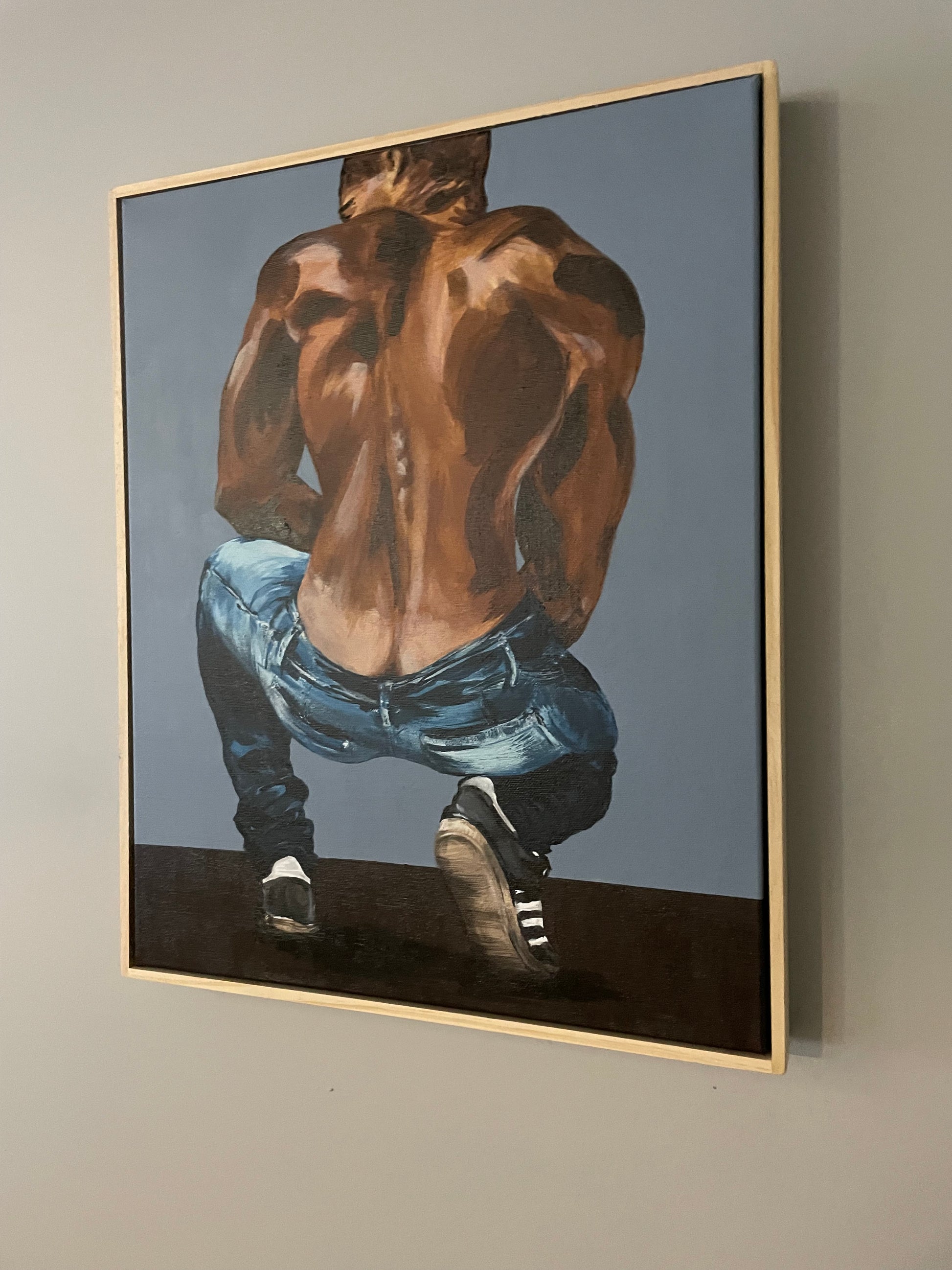 Street vibe as the sun glistens off his chocolate skin. Peaceful and pondering as he waits... but what is he waiting for?