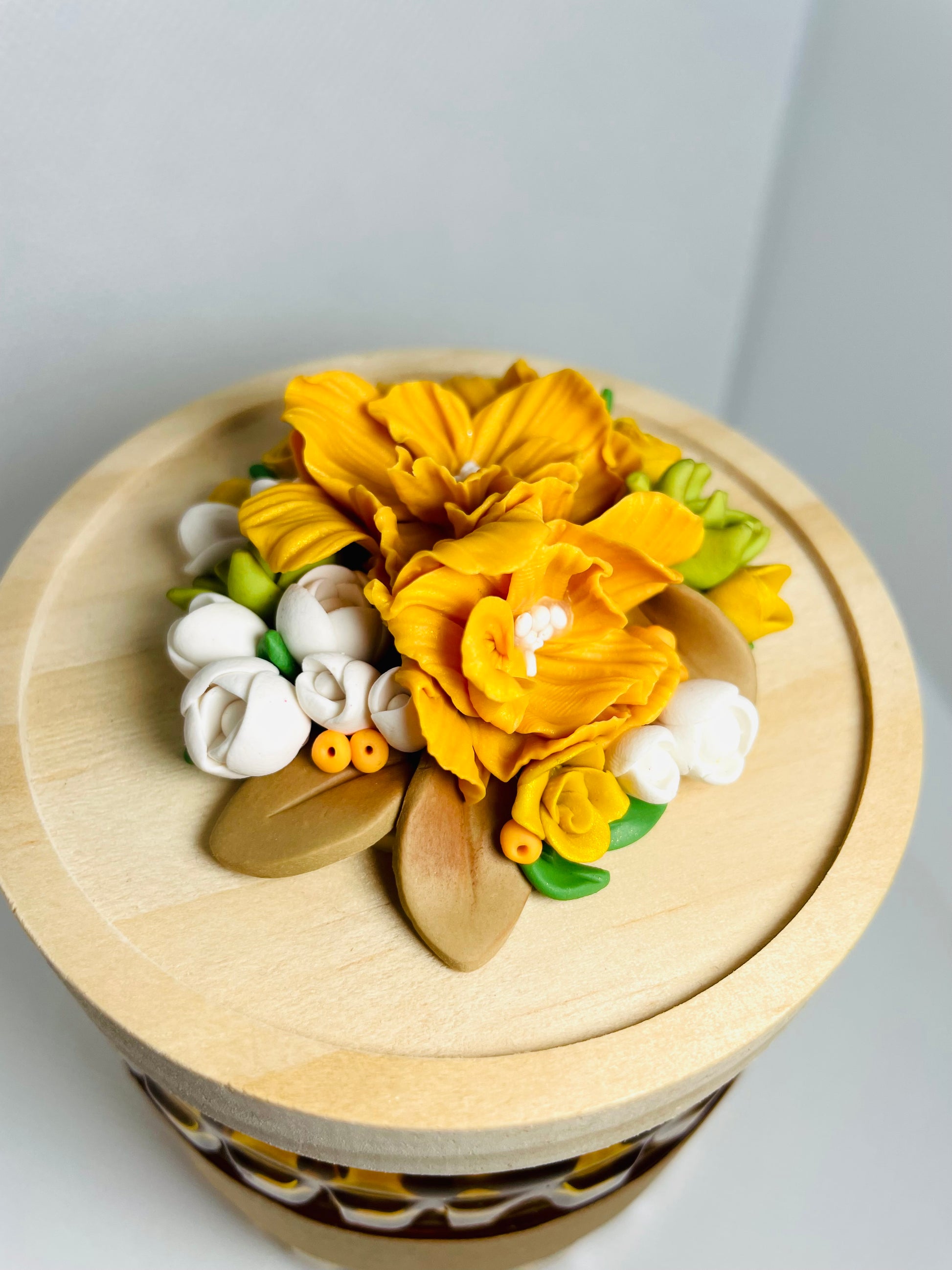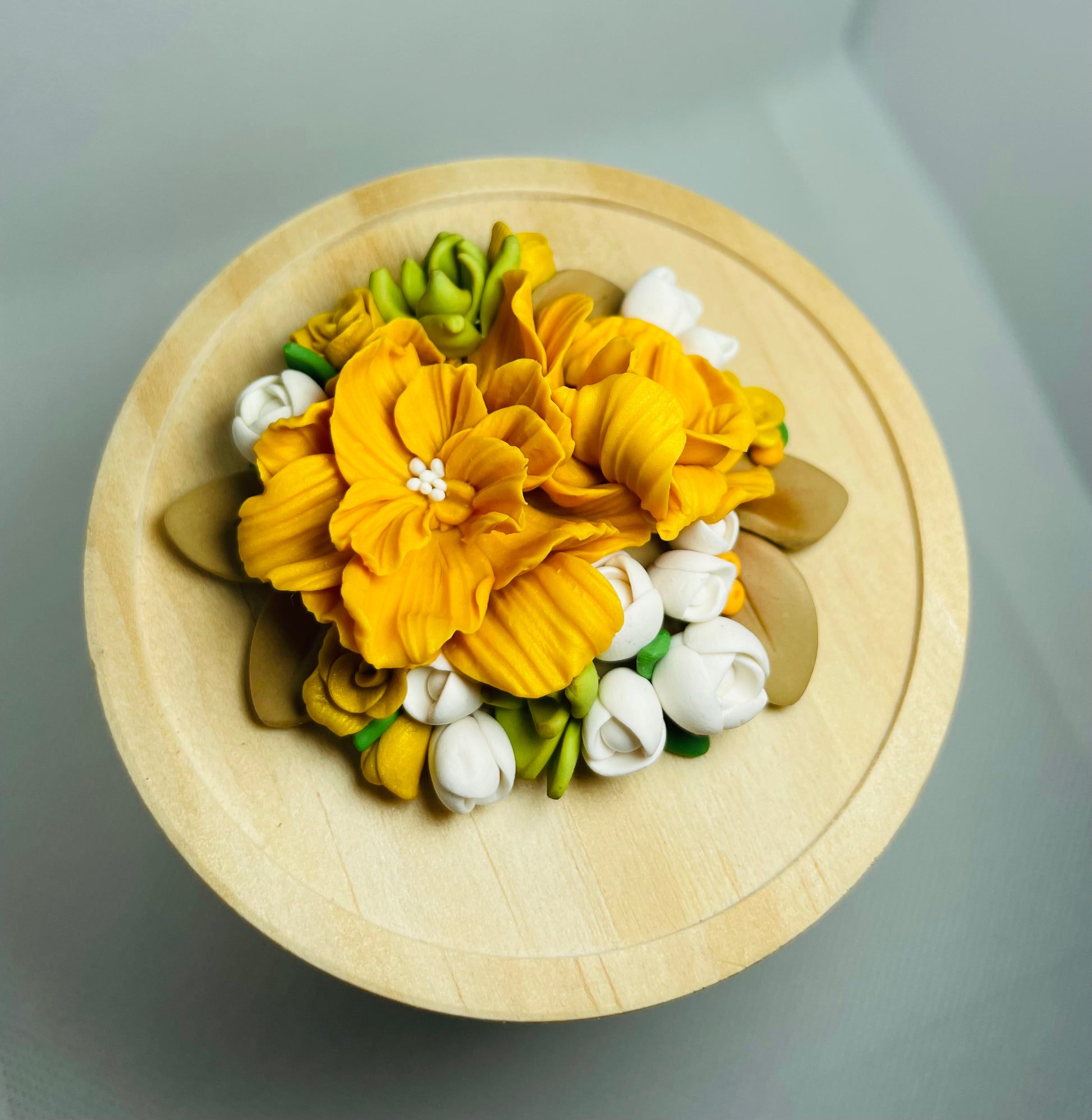Caring for your polymer clay creation is quite easy. To dust, use a soft clean makeup brush and lightly brush over it as required. Polymer clay is not food safe. Long exposure to water is not advised. Whilst Polymer Clay is somewhat sturdy, it is still very fragile, never apply unnecessary pressure or tension to any of the items.