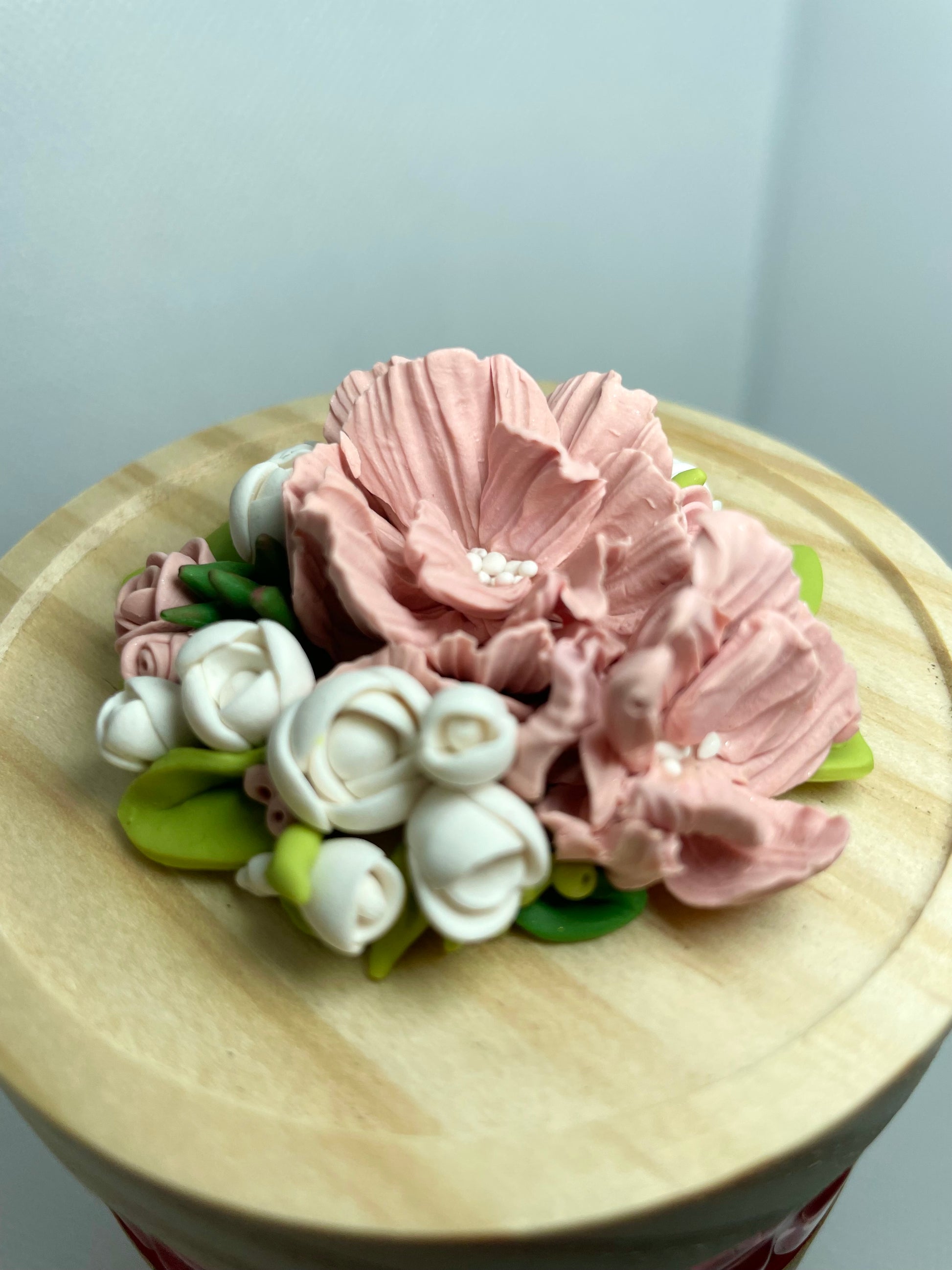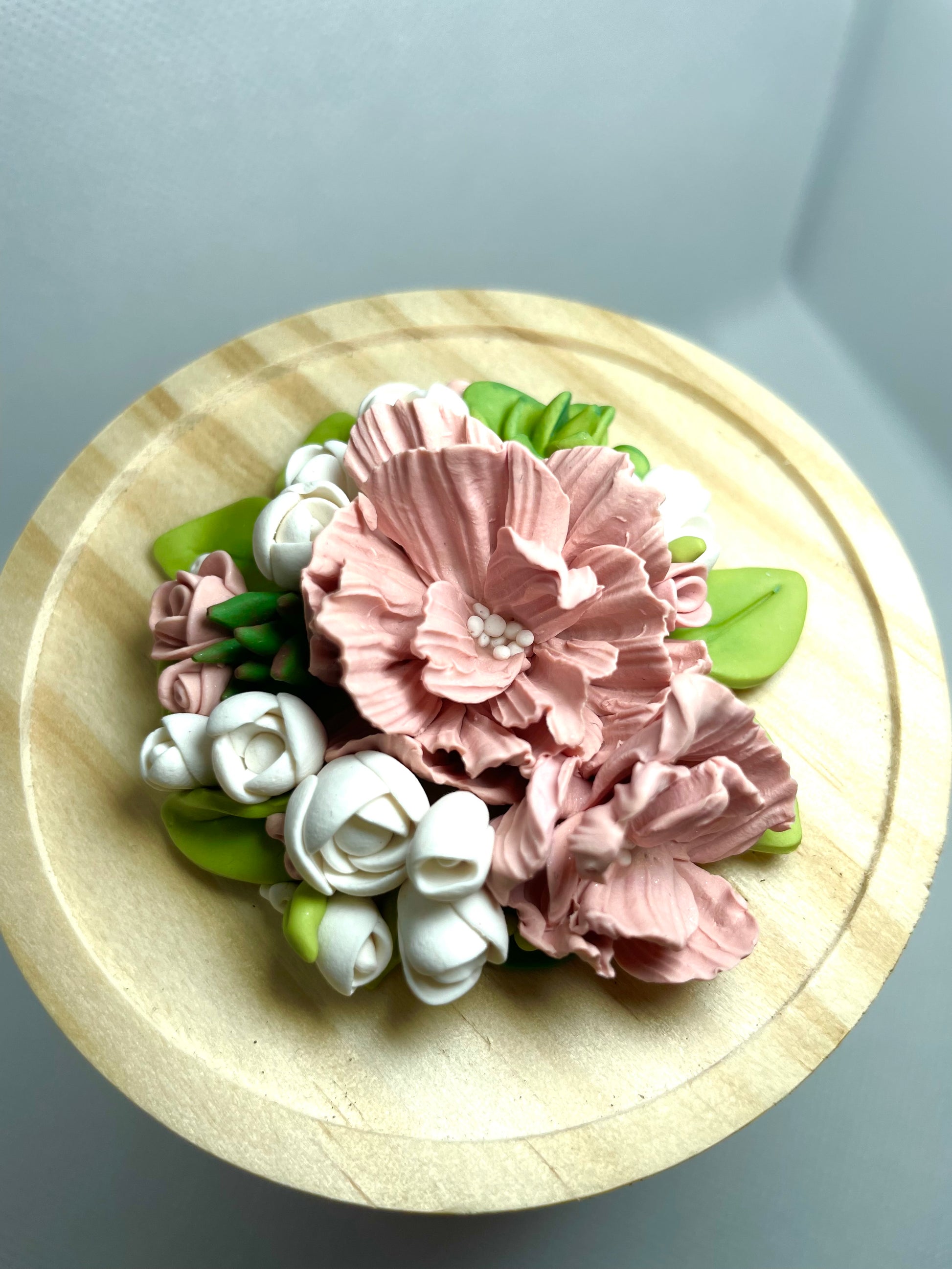 Caring for your polymer clay creation is quite easy. To dust, use a soft clean makeup brush and lightly brush over it as required. Polymer clay is not food safe. Long exposure to water is not advised. Whilst Polymer Clay is somewhat sturdy, it is still very fragile, never apply unnecessary pressure or tension to any of the items.