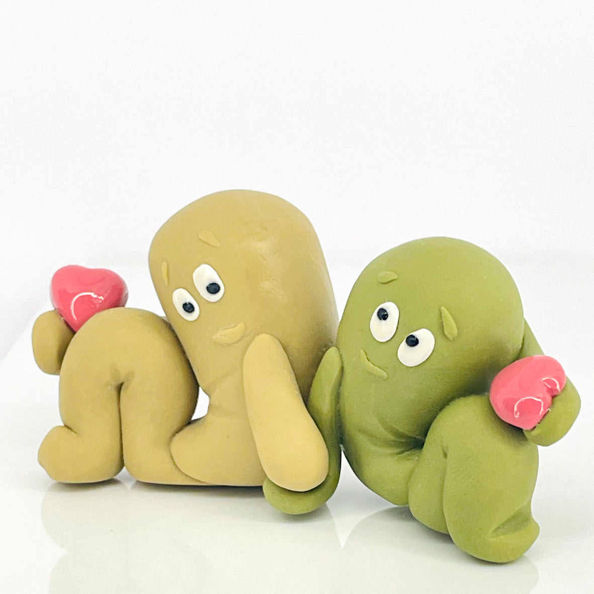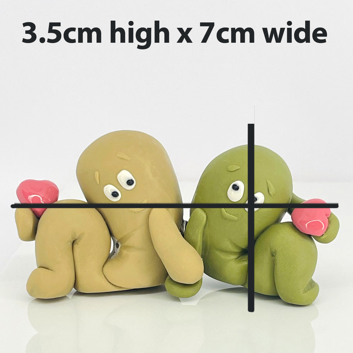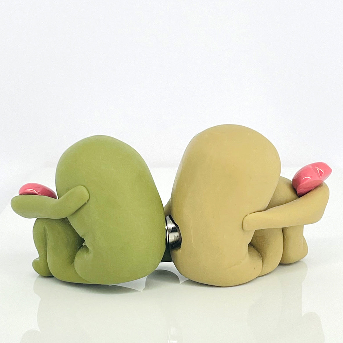 Caring for your polymer clay ornament is easy. You can dust it with a soft clean cloth or run it under cold water and gently pat dry. Long exposure to water is not advised, however it is waterproof so it can get wet without any damage. Whilst Polymer Clay is pretty sturdy once baked, it is still fragile, please never apply unnecessary pressure or tension to your item. The mini magnets used in your CUDDLE Beans are super strong so when separating your CUDDLE Beans please take care.