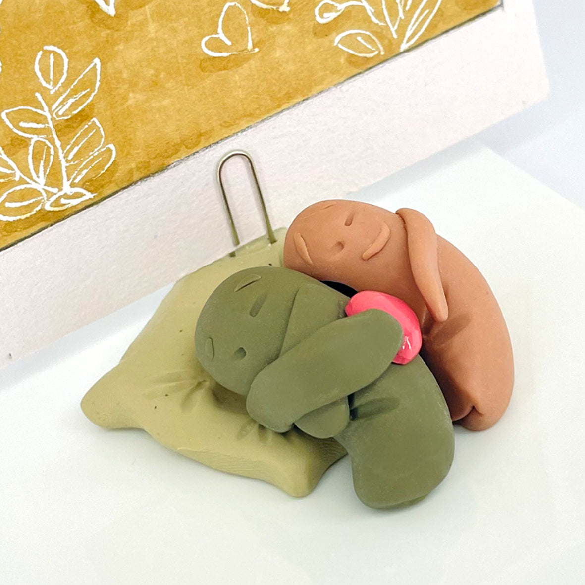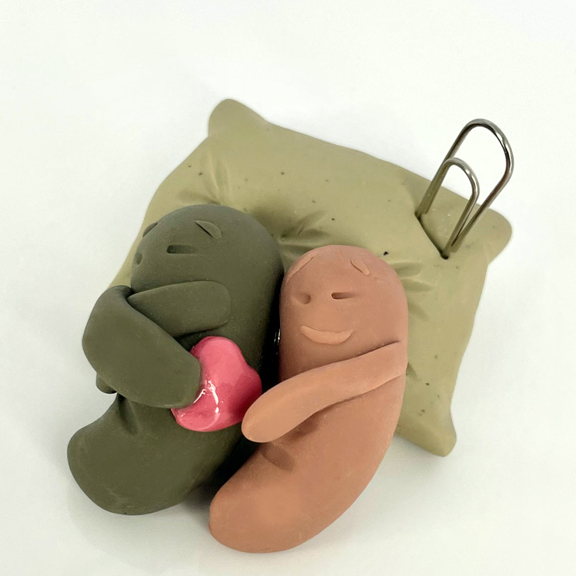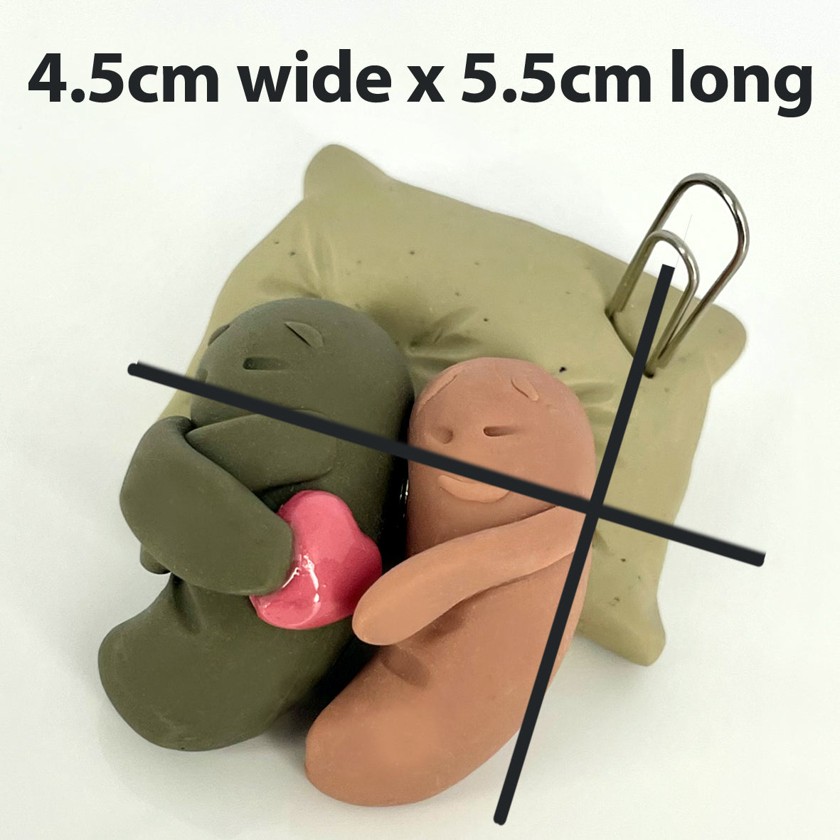 Caring for your polymer clay ornament is easy. You can dust it with a soft clean cloth or run it under cold water and gently pat dry. Long exposure to water is not advised, however it is waterproof so it can get wet without any damage. Whilst Polymer Clay is pretty sturdy once baked, it is still fragile, please never apply unnecessary pressure or tension to your item. The mini magnets used in your CUDDLE Beans are super strong so when separating your CUDDLE Beans please take care.