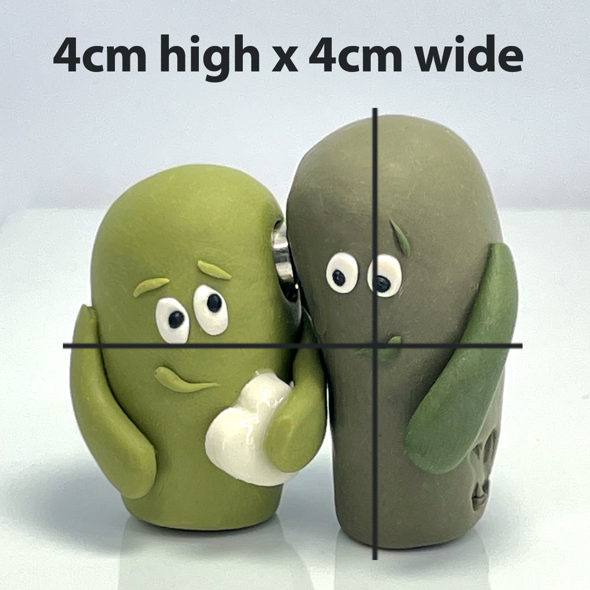 Caring for your polymer clay ornament is easy. You can dust it with a soft clean cloth or run it under cold water and gently pat dry. Long exposure to water is not advised, however it is waterproof so it can get wet without any damage. Whilst Polymer Clay is pretty sturdy once baked, it is still fragile, please never apply unnecessary pressure or tension to your item. The mini magnets used in your CUDDLE Beans are super strong so when separating your CUDDLE Beans please take care.