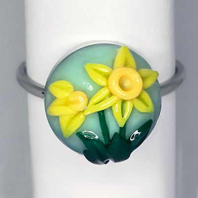 This item has been handmade and is a one of kind, unique creation. Each ring comes with a clear ring box (as pictured) and the band is adjustable.