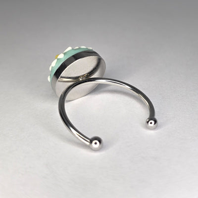 This item has been handmade and is a one of kind, unique creation. Each ring comes with a clear ring box (as pictured) and the band is adjustable.