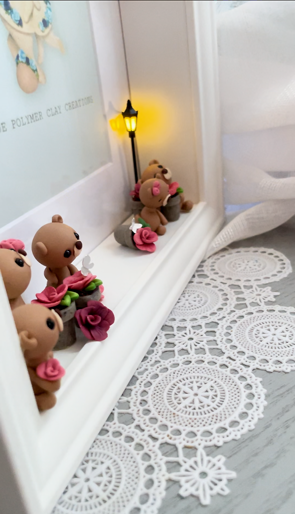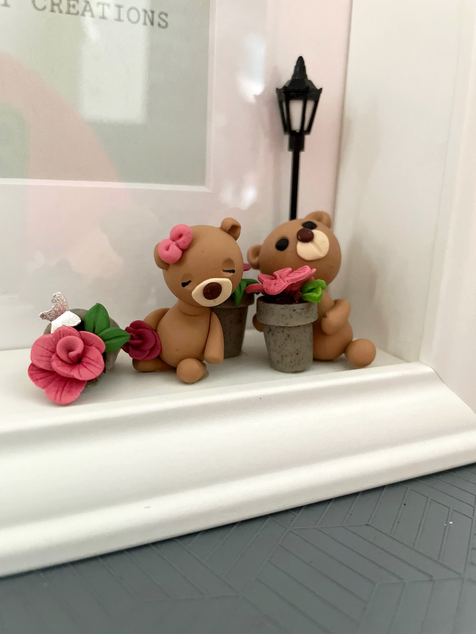 Caring for your polymer clay mug is quite easy. To dust, use a soft clean makeup brush and lightly brush over it as required. Polymer clay is not food safe. Long exposure to water is not advised. Whilst Polymer Clay is somewhat sturdy, it is still very fragile, never apply unnecessary pressure or tension to any of the items.