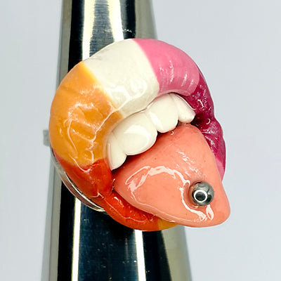 Caring for your polymer clay ring easy. To dust, use a soft clean makeup brush and lightly brush over it or run it under cold water and let it drip dry. Long exposure to water is not advised, however it is waterproof so you can wash your hands, have a shower or even go swimming. Whilst Polymer Clay is pretty sturdy once baked, it is still very fragile, never apply unnecessary pressure or tension to your item.