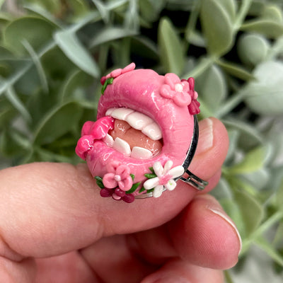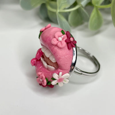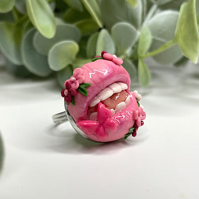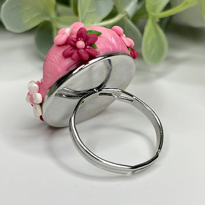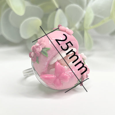 Caring for your polymer clay ring easy. To dust, use a soft clean makeup brush and lightly brush over it or run it under cold water and let it drip dry. Long exposure to water is not advised, however it is waterproof so you can wash your hands, have a shower or even go swimming. Whilst Polymer Clay is pretty sturdy once baked, it is still very fragile, never apply unnecessary pressure or tension to your item.