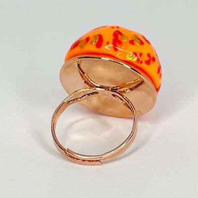 Caring for your polymer clay ring easy. To dust, use a soft clean makeup brush and lightly brush over it or run it under cold water and let it drip dry. Long exposure to water is not advised, however it is waterproof so you can wash your hands, have a shower or even go swimming. Whilst Polymer Clay is pretty sturdy once baked, it is still very fragile, never apply unnecessary pressure or tension to your item.