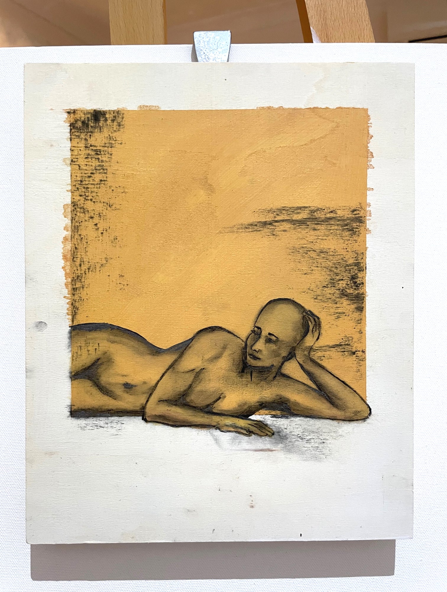 Acrylic and charcoal on timber board.