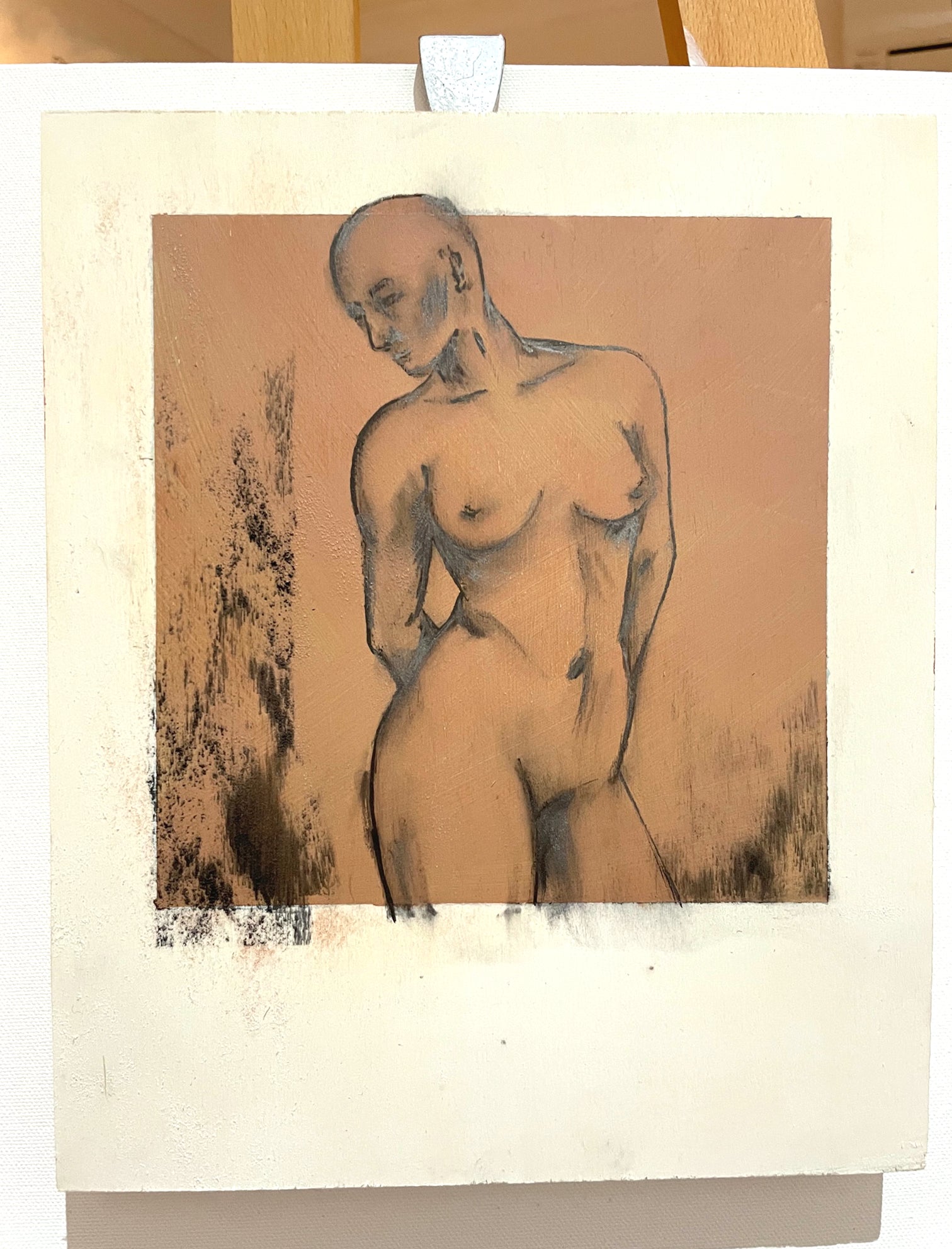Acrylic and charcoal on timber board.