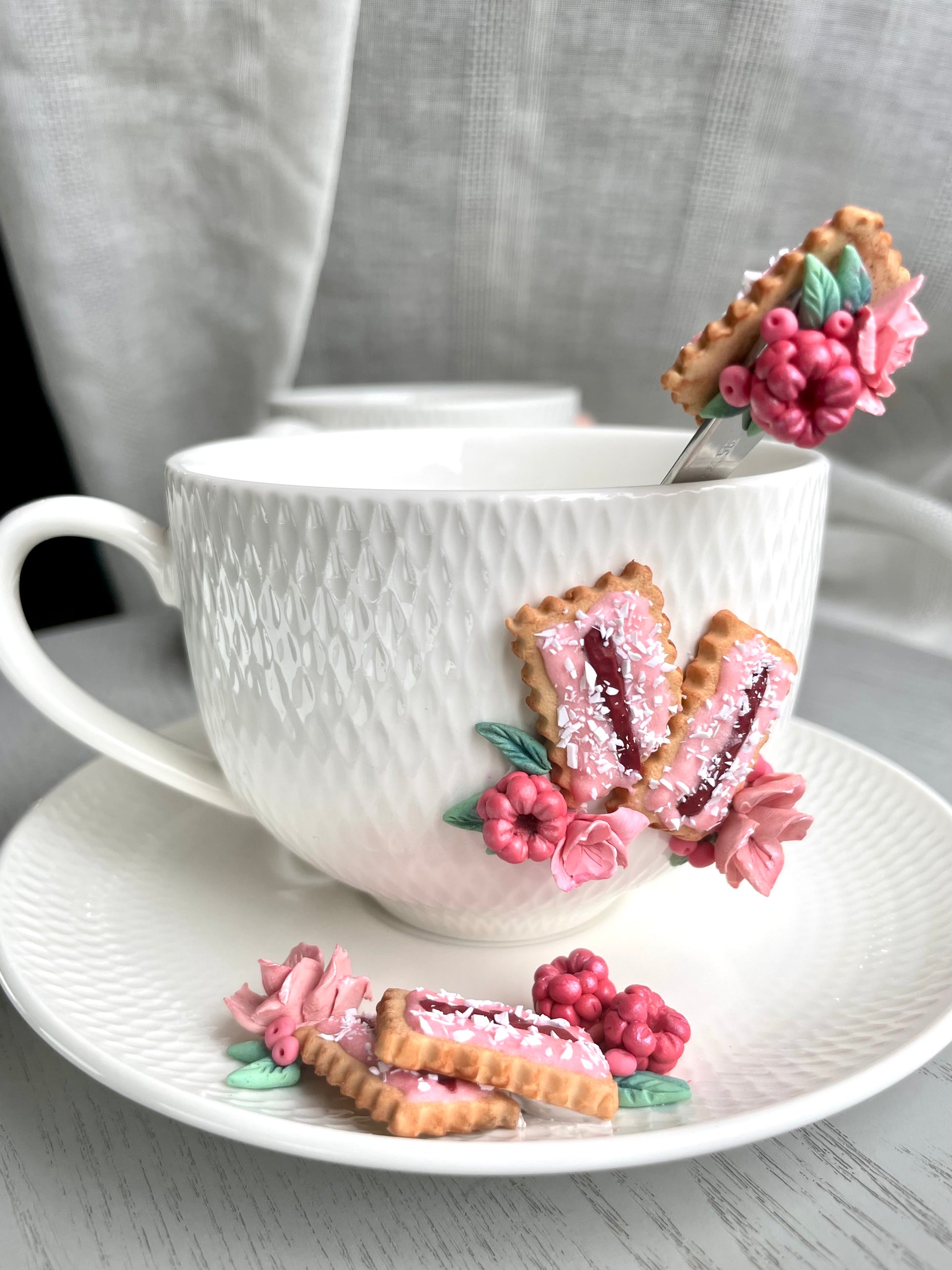 Caring for your polymer clay tea set is quite easy. Please do not place in microwave , oven or dishwasher. A gentle hand-wash with luke warm or cold water and a small amount of detergent, then let it air dry / drip dry. OR use a clean soft makeup brush to dust as required. Polymer clay is not food safe. Long exposure to water is not advised. Whilst Polymer Clay is somewhat sturdy, it is still very fragile, never apply unnecessary pressure or tension to any of the items.