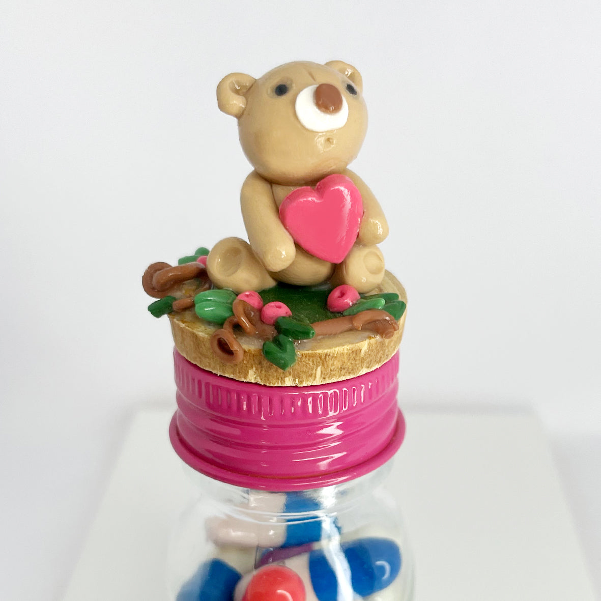 Caring for your polymer clay item is easy. You can dust it with a soft clean cloth or run it under cold water and gently pat dry or let it drip dry. Long exposure to water is not advised, however it is waterproof so it can get wet without any damage. Whilst Polymer Clay is pretty sturdy once baked, it is still fragile, please never apply unnecessary pressure or tension to your item.