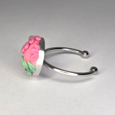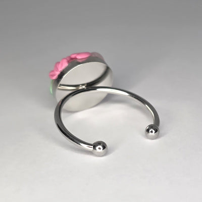 Caring for your polymer clay ring easy. To dust, use a soft clean makeup brush and lightly brush over it or run it under cold water and let it drip dry. Long exposure to water is not advised, however it is waterproof so you can wash your hands, have a shower or even go swimming. Whilst Polymer Clay is pretty sturdy once baked, it is still very fragile, never apply unnecessary pressure or tension to your item.