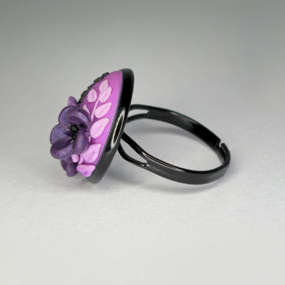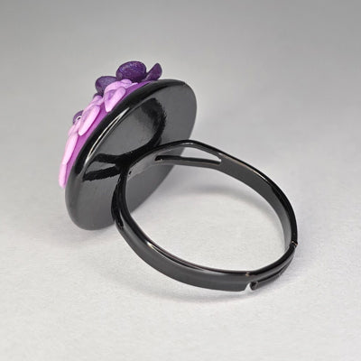 Caring for your polymer clay ring easy. To dust, use a soft clean makeup brush and lightly brush over it or run it under cold water and let it drip dry. Long exposure to water is not advised, however it is waterproof so you can wash your hands, have a shower or even go swimming. Whilst Polymer Clay is pretty sturdy once baked, it is still very fragile, never apply unnecessary pressure or tension to your item.
