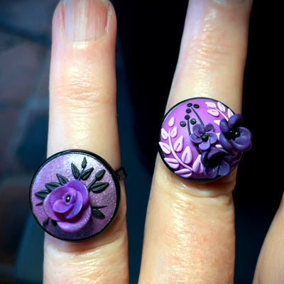 Caring for your polymer clay ring easy. To dust, use a soft clean makeup brush and lightly brush over it or run it under cold water and let it drip dry. Long exposure to water is not advised, however it is waterproof so you can wash your hands, have a shower or even go swimming. Whilst Polymer Clay is pretty sturdy once baked, it is still very fragile, never apply unnecessary pressure or tension to your item.